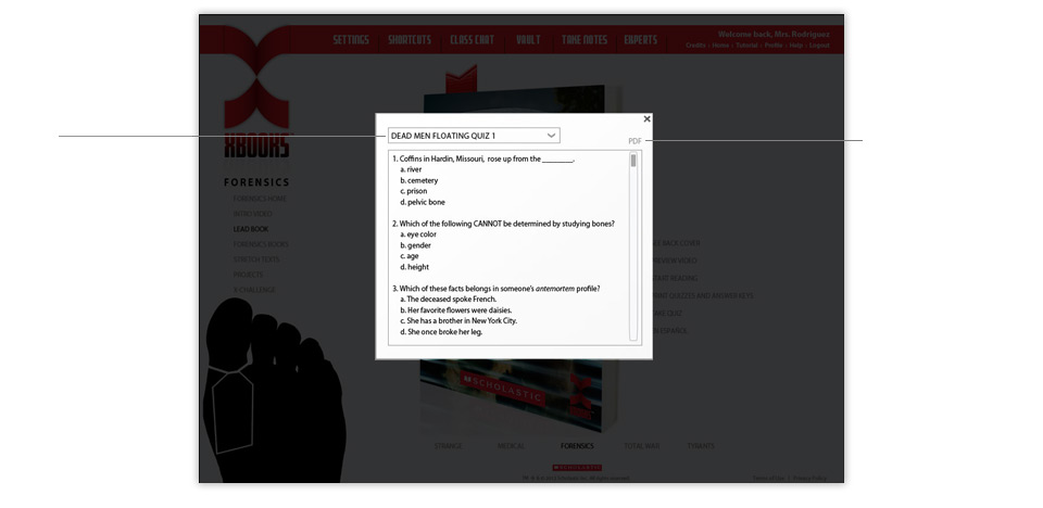 Select the quiz or answer key you want to view from this drop-down menu. You can then print quizzes and answer keys for yourself and your students.
