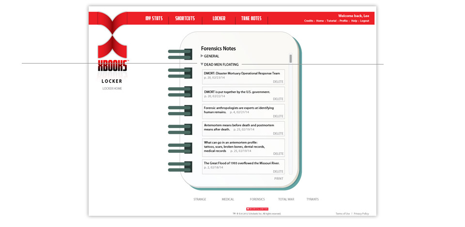 Each notepad is divided into six sections: one section for each of the four English books in the strand, one for the Spanish version of the Lead Book, and one General category.