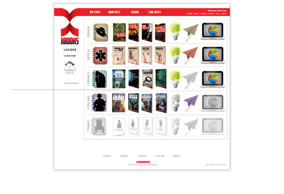 You can select any cover to open an eBook. Selecting this cover will open the Dead Men Floating eBook.
