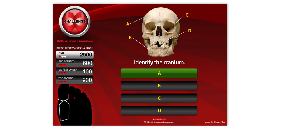After the question is answered, players select the X-Challenge logo to return to the game board. It will then be the next team's turn.
