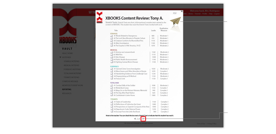 All of the XBOOKS Stretch Texts are listed here. You can print out this page and mark the Stretch Texts that the student has read.
