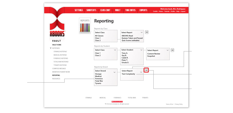First choose the strand for which you'd like the report—in this case, FORENSICS.