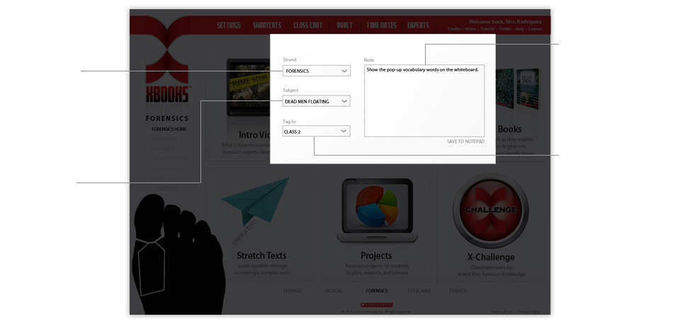 Choose the subject of your note—one of the four English books in the strand, the Spanish version of the Lead Book, or General. This will determine what category your note is saved to in the strand notepad.